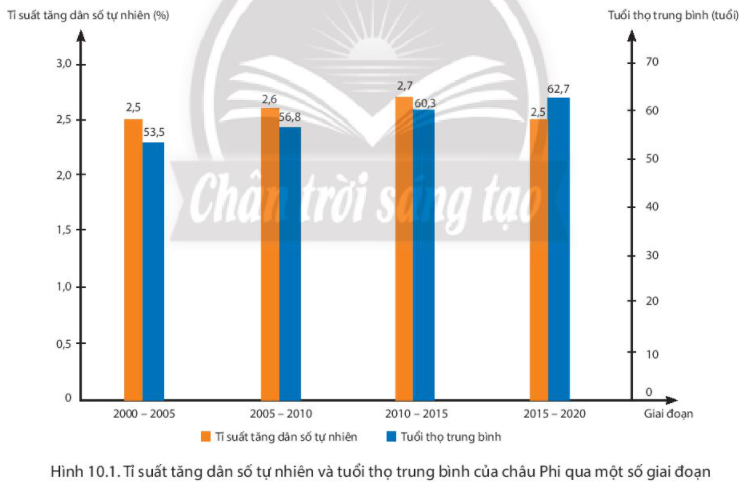 – Nhận xét tỉ suất gia tăng dân số tự nhiên của châu Phi từ giai đoạn 2000 – 2005 đến giai đoạn 2015 – 2020.