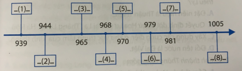 Bài tập 4. Hãy lập và hoàn thành trục thời gian (theo mẫu dưới đây) về những sự kiện chính diễn ra trong thời Ngô – Đinh – Tiền Lê