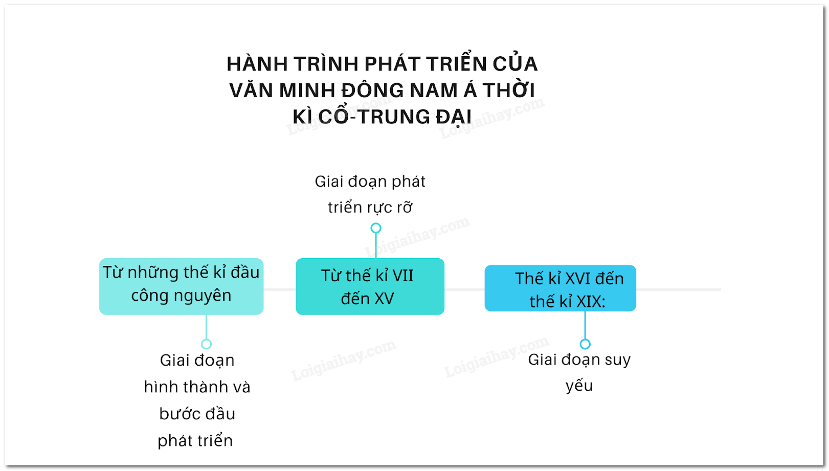 – Giai đoạn văn minh Đông Nam Á từ thế kỉ XVI đến thế kỉ XIX: Gắn .với quá trình suy yếu của các vương triều phong kiến và sự xâm nhập của chủ nghĩa tư bản phương Tây.