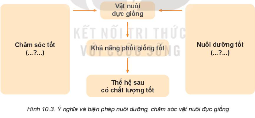 Đọc nội dung mục III kết hợp quan sát Hình 10.3, nêu ý nghĩa và biện pháp nuôi dưỡng chăm sóc vật nuôi đực giống.