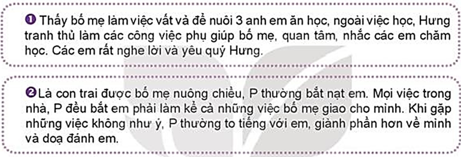– Đọc thông tin và đưa ra nhận xét về việc làm của Hưng và P trong đó.