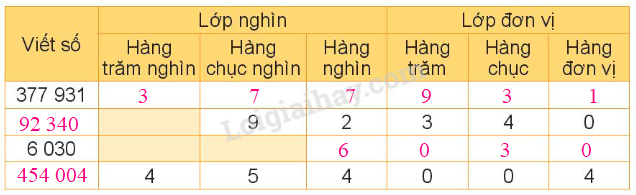 – Viết số theo từng lớp, lần lượt từ hàng trăm nghìn, hàng chục nghìn, hàng nghìn, hàng trăm, hàng chục, hàng đơn vị