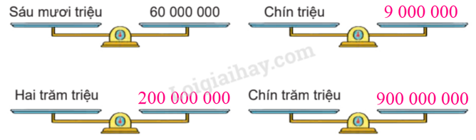 – Trong số có 9 chữ số, các chữ số từ trái sang phải lần lượt là hàng trăm triệu, hàng chục triệu, hàng triệu,  hàng trăm nghìn, hàng chục nghìn, hàng nghìn, hàng trăm, hàng chục, hàng đơn vị