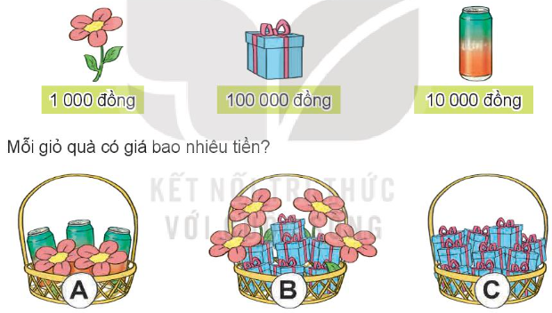 Vậy giỏ quà C có giá là 100 000 x 10 = 1 000 000 (đồng)