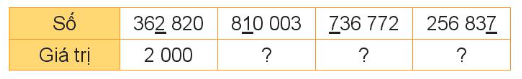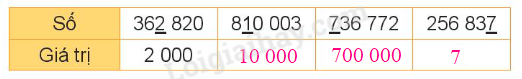 – Chữ số 7 được gạch chân trong số 736 772 thuộc hàng trăm nghìn nên có giá trị là 700 000
