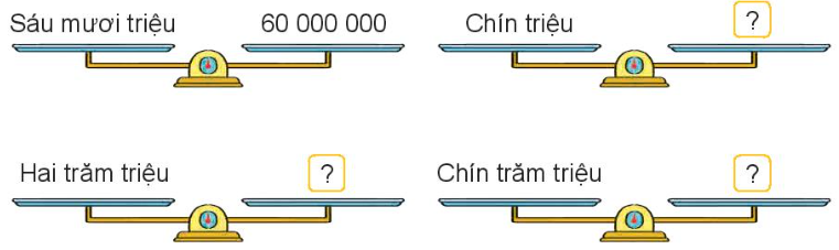 Quan sát hình vẽ và viết số tương ứng với cách đọc ở đĩa cân bên trái