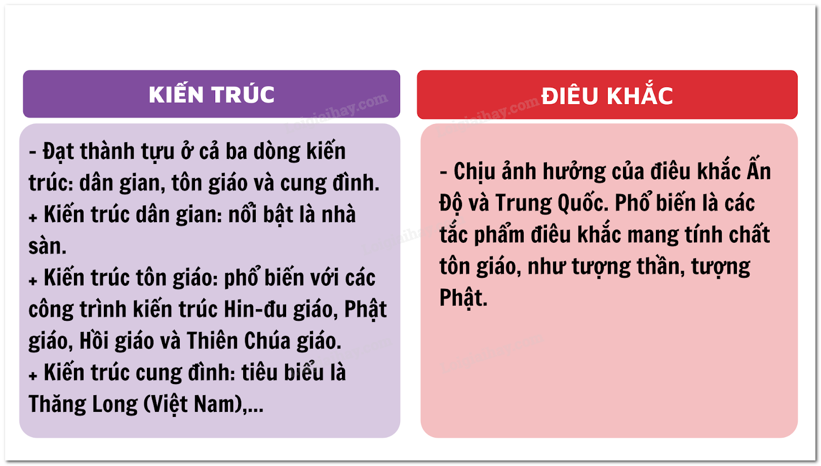 Thành tựu chủ yếu của kiến trúc, điêu khắc ở Đông Nam Á: