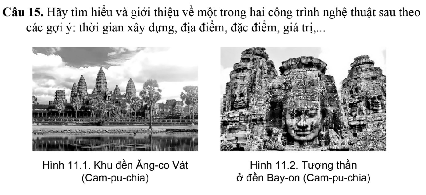 Câu 16. Hãy kể tên ít nhất hai công trình nghệ thuật kiến trúc, điêu khắc của văn minh Đông Nam Á thời kì cổ – trung đại chịu ảnh hưởng của các tôn giáo sau: Phật giáo, Hin-đu giáo, Thiên Chúa giáo.
