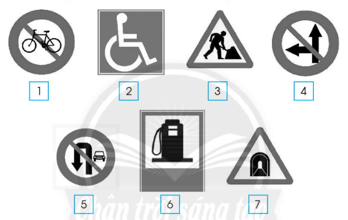Xếp các biển báo giao thông dưới đây vào cột phù hợp và viết tên gọi của biển báo đó theo bảng bên dưới.