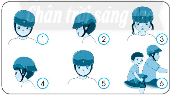 – Hình 5: Đội mũ ngay ngắn, cài dây cẩn thận => Đúng