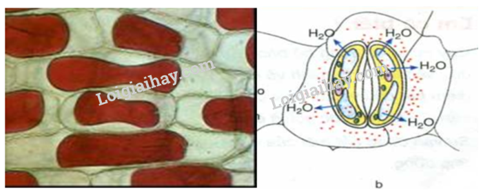 a) Khi tế bào co nguyên sinh thì khí khổng đóng. Khi tế bào hình hạt đậu (tế bào khí khổng) mất nước thì màng mỏng và màng dày tế bào duỗi ra, khí khổng đóng.