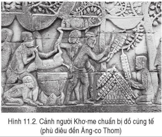 Đọc thông tin và quan sát hình 11.1, 11.2, hãy nêu một số thành tựu văn hóa tiêu biểu của vương quốc Cam-pu-chia.