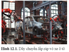 Dây chuyền lắp ráp vỏ xe ô tô ở hình 12.1 có phải là dây chuyền tự động không Vì sao?