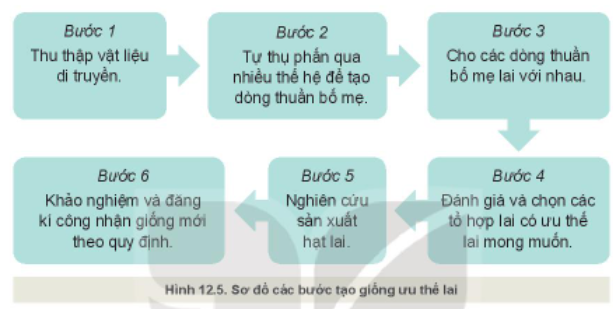 Quan sát Hình 12.5, mô tả các bước tạo giống ưu thế lai.