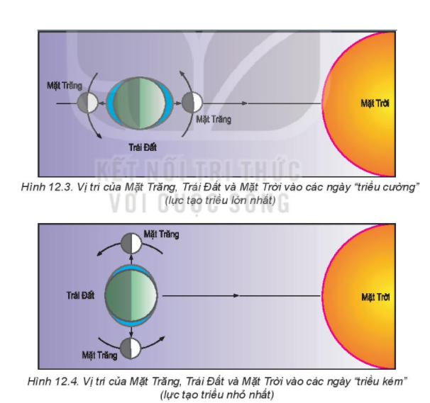 – Cho biết khi dao động thủy triều có biên độ lớn nhất và nhỏ nhất thì ở Trái Đất thấy hình dạng Mặt Trăng như thế nào.