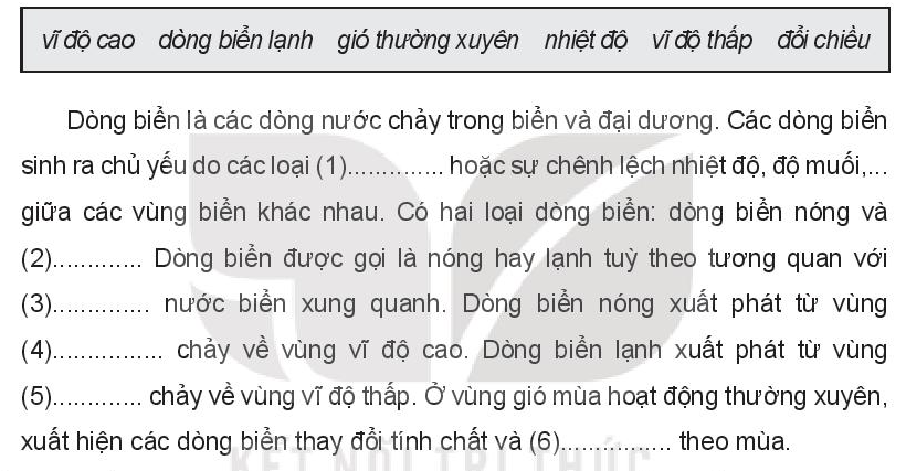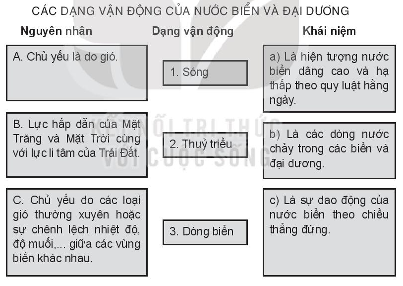 Đọc lại kiến thức về hiện tượng sóng biển, thủy triều và dòng biển