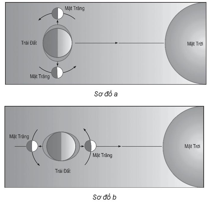 – Xác định sơ đồ nào thể hiện ngày triều cường, sơ đồ nào thể hiện ngày triều kém.
