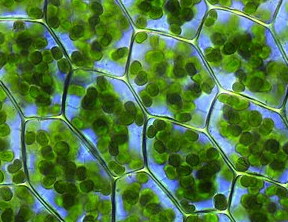 Hình tròn màu xanh là các hạt lục lạp. Vì chúng có chứa chất diệp lục, nên có màu xanh lục; chúng thực hiện chức năng quang hợp cho cây.