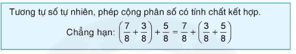 Áp dụng tính chất kết hợp của phép cộng để nhóm hai phân số có cùng mẫu số với nhau.