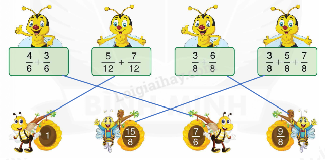 Áp dụng tính chất kết hợp của phép cộng để nhóm hai phân số có cùng mẫu số với nhau.