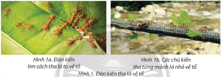 Em hãy cho biết đàn kiến ở Hình 1a và Hình 1b đã làm thế nào để đưa được chiếc là to về tổ?