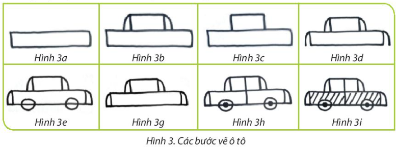 – Thứ tự để vẽ chiếc ô tô: Hình 3a – 3c – 3b – 3d – 3g – 3e – 3h – 3i.