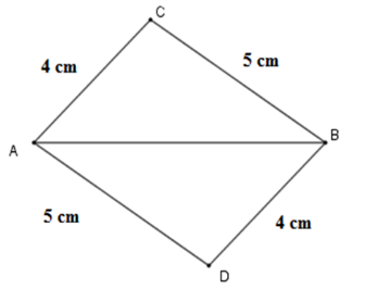 Từ bài ra ta có \(AC = BD = 4\,cm;\,BC = AD = 5\,cm.\)