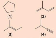 a) (1) C5H10; (2) C5H8; (3) C5H10; (4) C5H8.