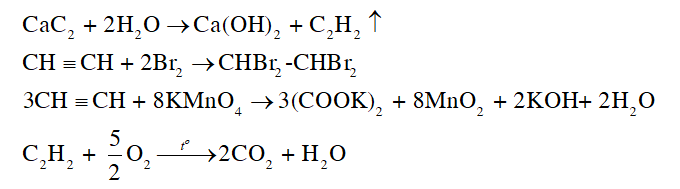 – Hiện tượng: khí sinh ra làm mất màu nước bromine, thuốc tím, khi đốt cháy tỏa ra nhiều nhiệt.
