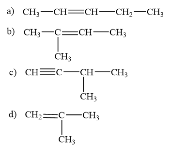 b) Cho biết trong cácchất trên, chất nào là hydrocarbon không no, chất nào là alkene, chất nào là alkyne.