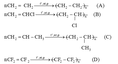 Viết phương trình hoá học tổng hợp các polymer đó từ các alkene tương ứng.