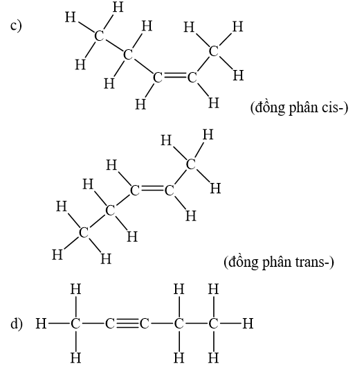 Viết công thức cấu tạo dạng đầy đủ và chỉ rõ đồng phân cis-, trans- (nếu có) của mỗi chất sau.