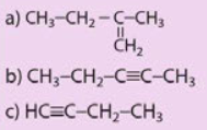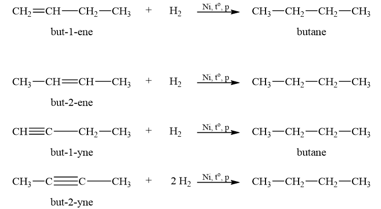 Cho biết công thức cấu tạo và tên gọi của alkene, alkyne mà khi hydrogen hoá tạo thành butane.
