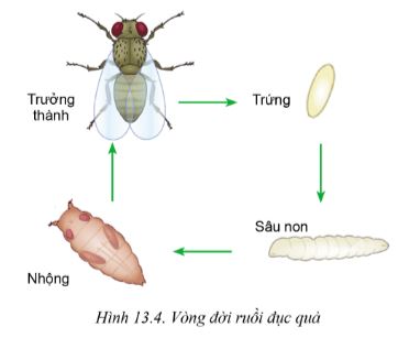 Nghiên cứu mục 2.3 và quan sát Hình 13.4, hãy mô tả đặc điểm hình thái và tập tính sinh học của ruồi đục quả.