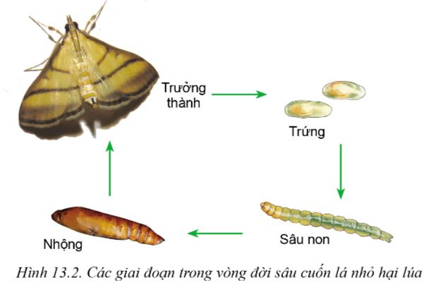 1. Quan sát Hình 13.2 và nghiên cứu nội dung mục 2.1, mô tả đặc điểm hình thái và tập tính sinh học của sâu cuốn lá nhỏ hại lúa.