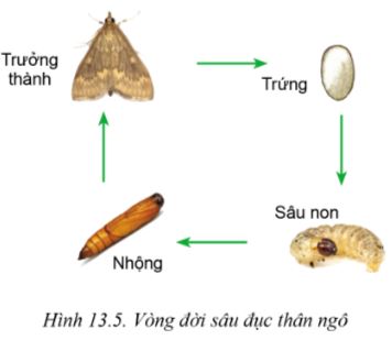 1. Nghiên cứu mục 2.4 và quan sát Hình 13.5, mô tả đặc điểm hình thái và tập tính sinh học của sâu đục thân ngô.