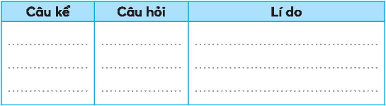 Xếp các câu kể trong đoạn dưới đây vào nhóm thích hợp. Đánh dấu tích vào ô trống trước những thông tin đúng về câu kể. Xếp các câu dưới đây vào nhóm thích hợp và giải thích lí do xếp như vậy. Điền dấu chấm, dấu chấm hỏi hoặc dấu chấm than vào ô trống. Đặt câu kể với từ ngữ cho trước. Viết lời giải cho các câu đố dưới đây.