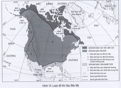 Yêu cầu a) Theo chiều bắc – nam, Bắ Mỹ có ba đới khí hậu là: cực và cận cực; ôn đới; cận nhiệt đới.