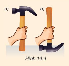 a) Đập mạnh cán búa xuống đất như Hình 14.4a.