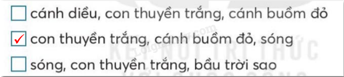 Những từ ngữ chỉ sự vật trong bài đọc là: giấy trắng, bút màu, bầu trời sao, ông trăng, ngõ, cánh diều, gió, trời xanh, biển cả, con thuyền, cánh buồm, sóng, ông mặt trời, chùm phượng, sân trường, ve.