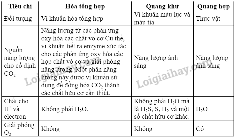 So sánh quá trình quang hợp, hóa tổng hợp và quang khử.