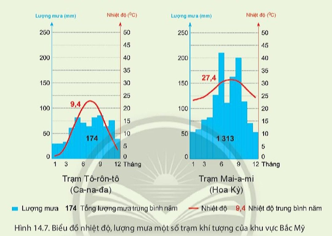 – Trạm Tô-rôn-tô: nằm ở phía đông nam Ca-na-đa, thuộc đới khí hậu ôn đới.