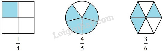 Quan sát hình vẽ để viết phân số tương ứng của mỗi hình.