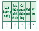Hãy xác định kiểu vận động cảm ứng và tác nhân kích thích trong các trường hợp sau: