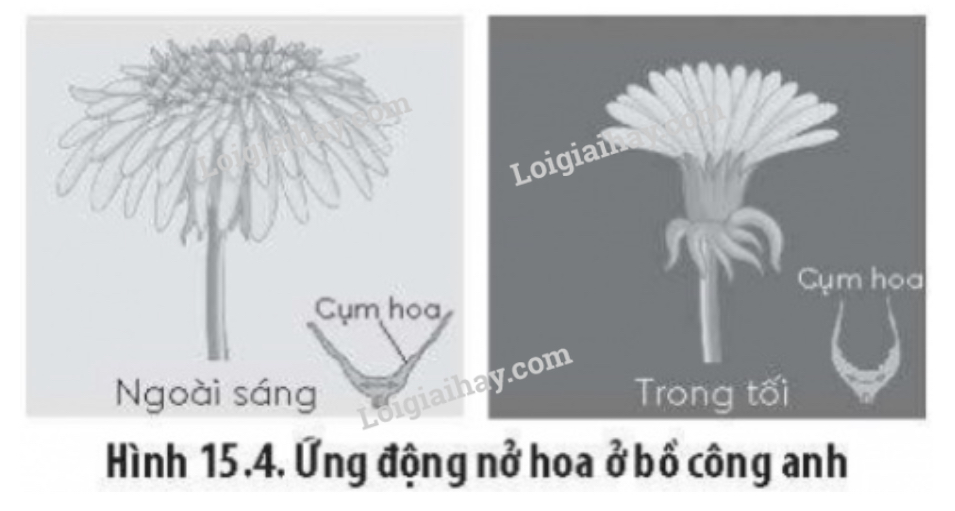 a) Ứng động nở hoa ở bồ công anh thuộc hình thức cảm ứng nào?