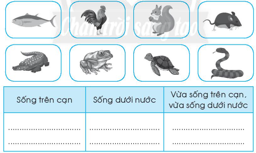 Viết tên các con vật có trong hình vào nhóm thích hợp.