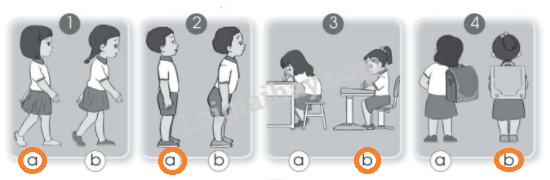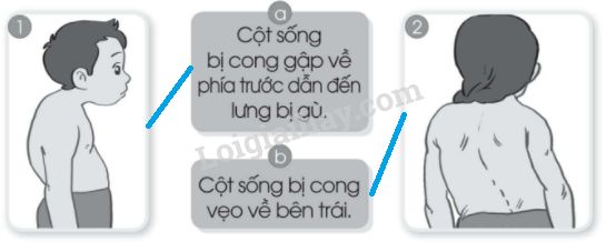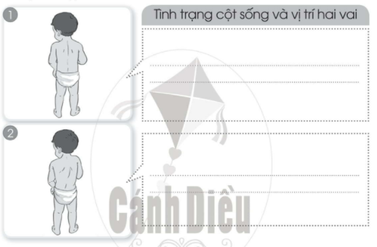 Viết nhận xét về tình trạng cột sống và vị trí hai vai của các bạn trong hình 1 và hình 2 vào chỗ … dưới đây cho phù hợp.