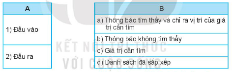 Hãy ghép mỗi nội dung ở cột A với những nội dung phù hợp ở cột B để xác định đầu vào và đầu ra của thuật toán tìm kiếm nhị phân.
