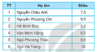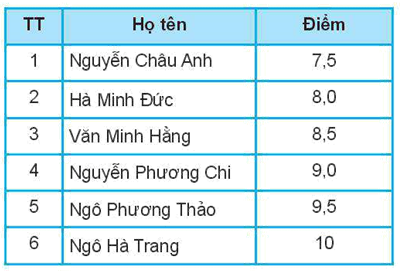 Cho bảng điểm môn Tin học của học sinh tổ một như sau: