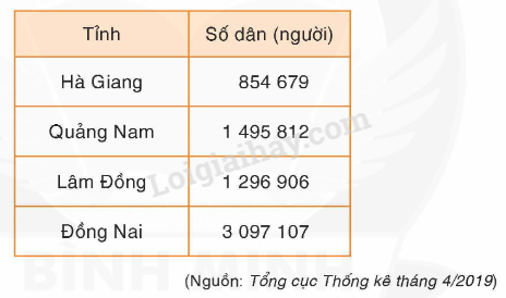 Bảng dưới đây cho biết số dân của một số tỉnh ở nước ta: